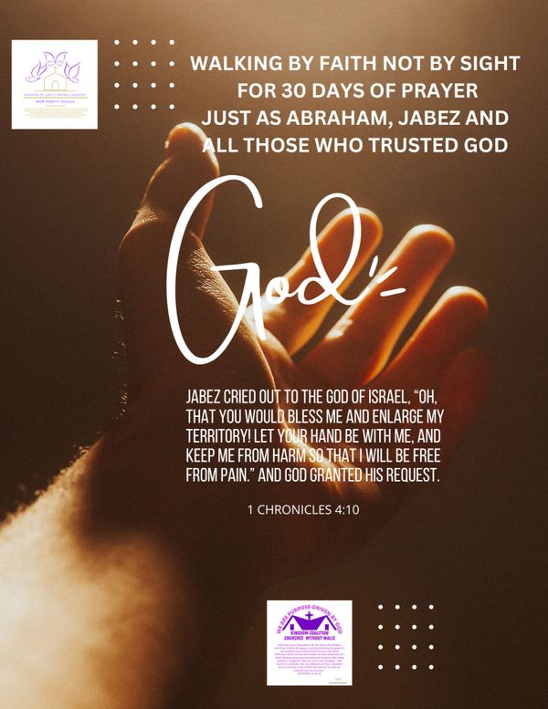 WALKING BY FAITH FOR 30 DAYS JUST AS ABRAHAM, JABEZ, AND ALL THOSE WHO TRUSTED GOD...