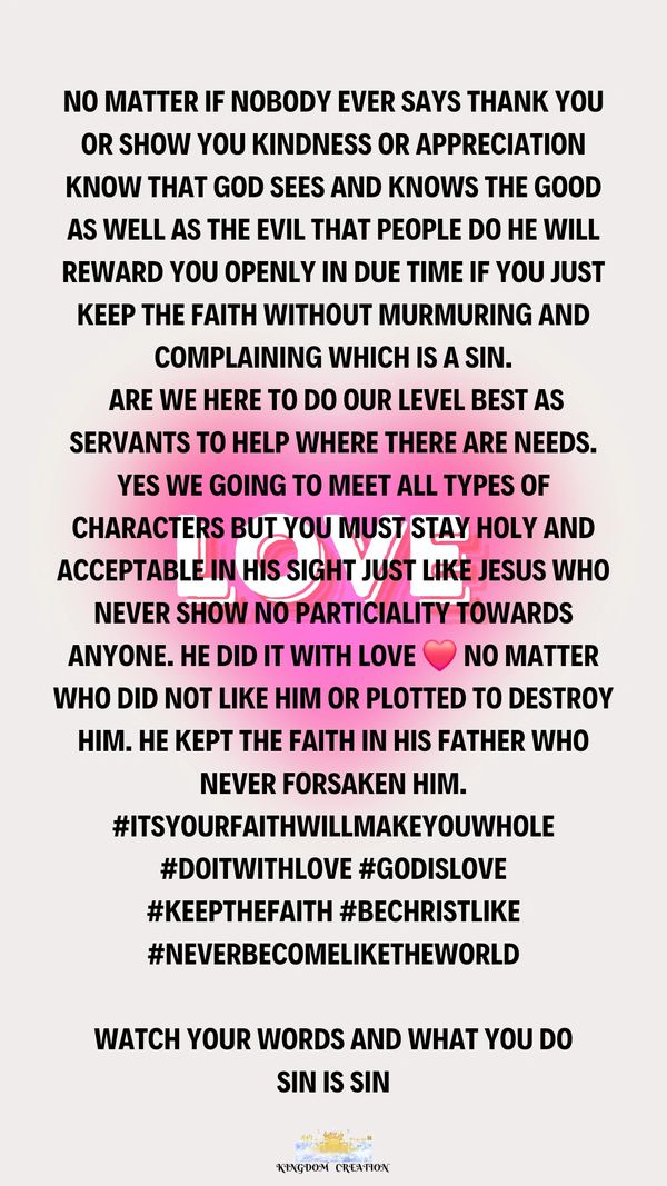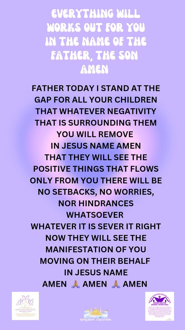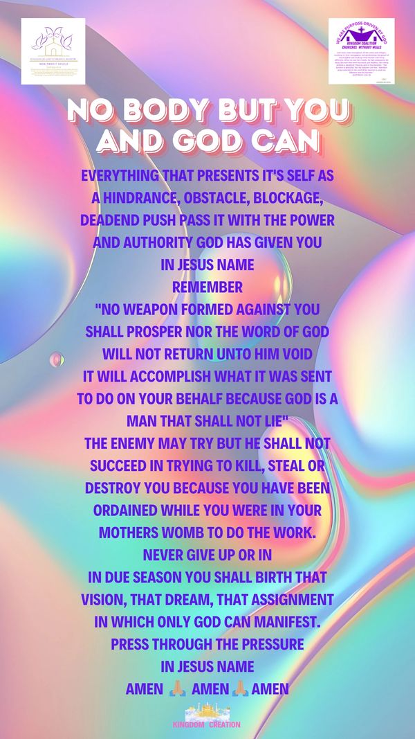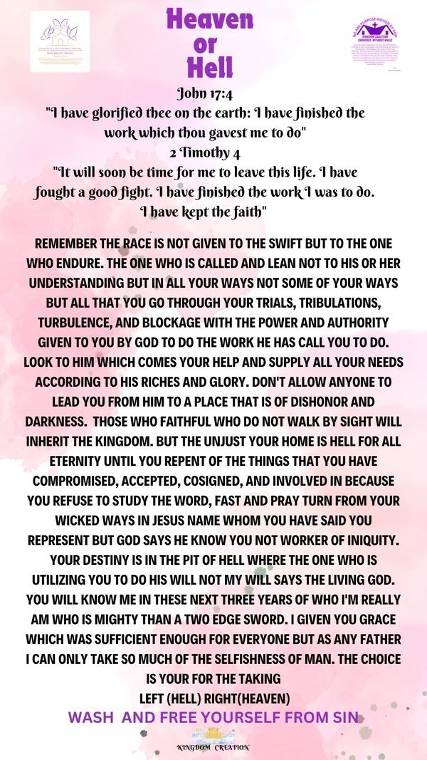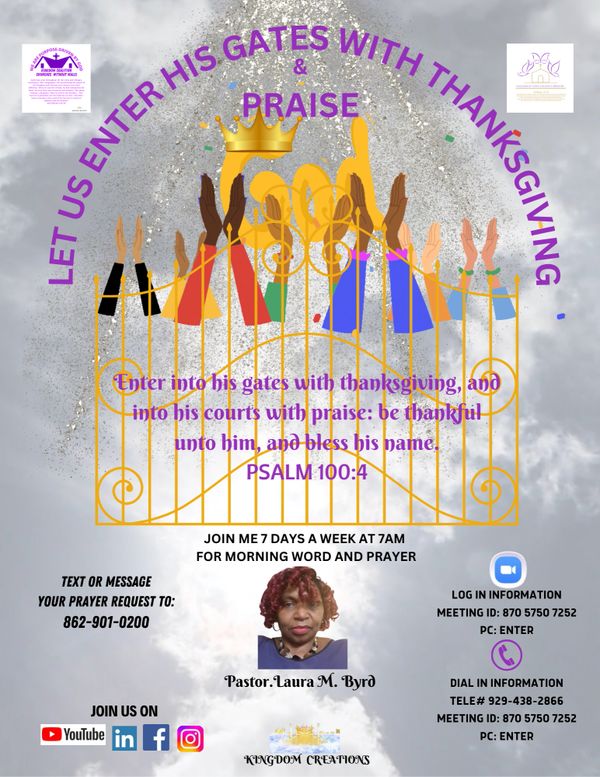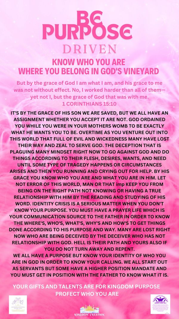 In 1995 Kingdom of God's children was formed out of hurt and pain that I endured as a wife in an abusive relationship, which God saved me from because of the calling on my life to be able to help those in the same situation to get in the right relationship with Him in order to help them in his will and way that they will know him as the LORD of their life. This ministry will continue to strive as God has mandated, planned, and purposed it to be run in order that many will see the salvation if the Lord in their life to bring them to a place of His abundance. We are a Purpose Driven ministry to go to uncharted territories.